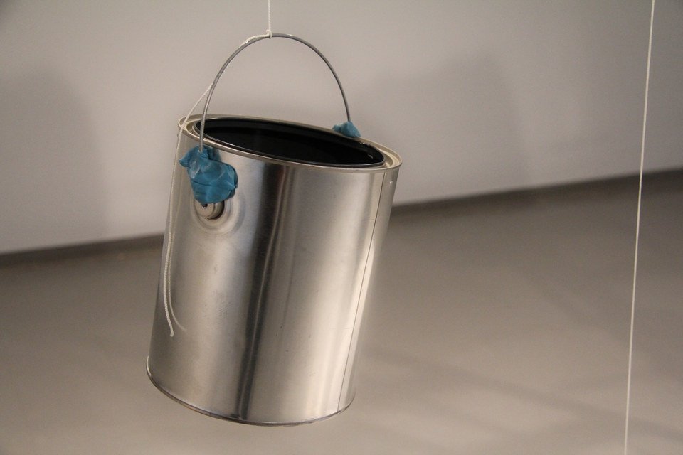materials: variable, including: piano strings, mechanical saltwater dimmer, plywood transducer table, electromagnetic pickups, stepper motor actuated light dimmer, urine, ladder, found objects, styrofoam, hardware, electromagnetic coils, custom circuits, drums