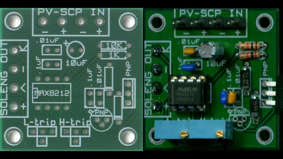 This circuit is based on the MAX8212 voltage supervisor integrated circuit. It is meant for "supervising" the power supply for, say, a computer and give a warning if the voltage is too high or too low. This behaviour can be adopted for use as a solar engine. I learned about this from the manual for a Solarbotics kit and the MAX8212 datasheet (pdfs are in the tarball).