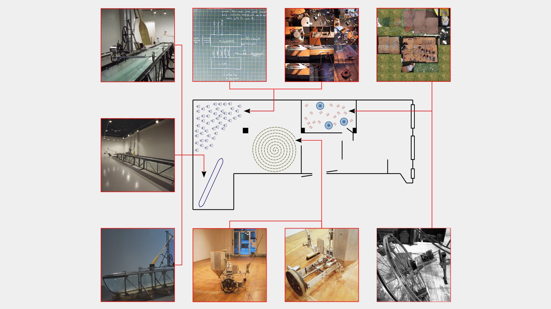 The use of the word "network" is perhaps a bit of a misnomer: there is no communication in the traditional manner with electric signals, and many of the Lazymode machines appear singular and self-contained. However, in another sense, they are physically, intrinsically linked by the fundamental protocol of available energy.