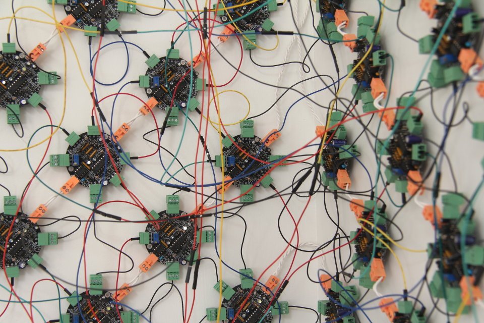 - propose that complex and provocative digital artworks can be made without computers (you just needs lots of neuromimes) and that algorithms can be embedded physically in objects as well as software